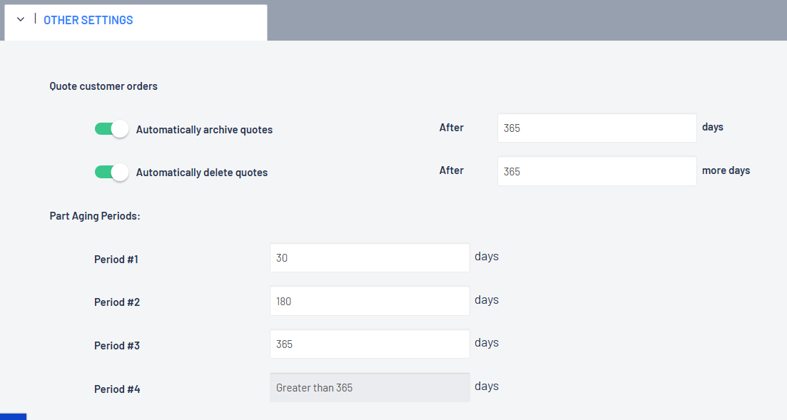 Set up your Part Aging Periods in your System Settings > Settings and Controls - Other Settings