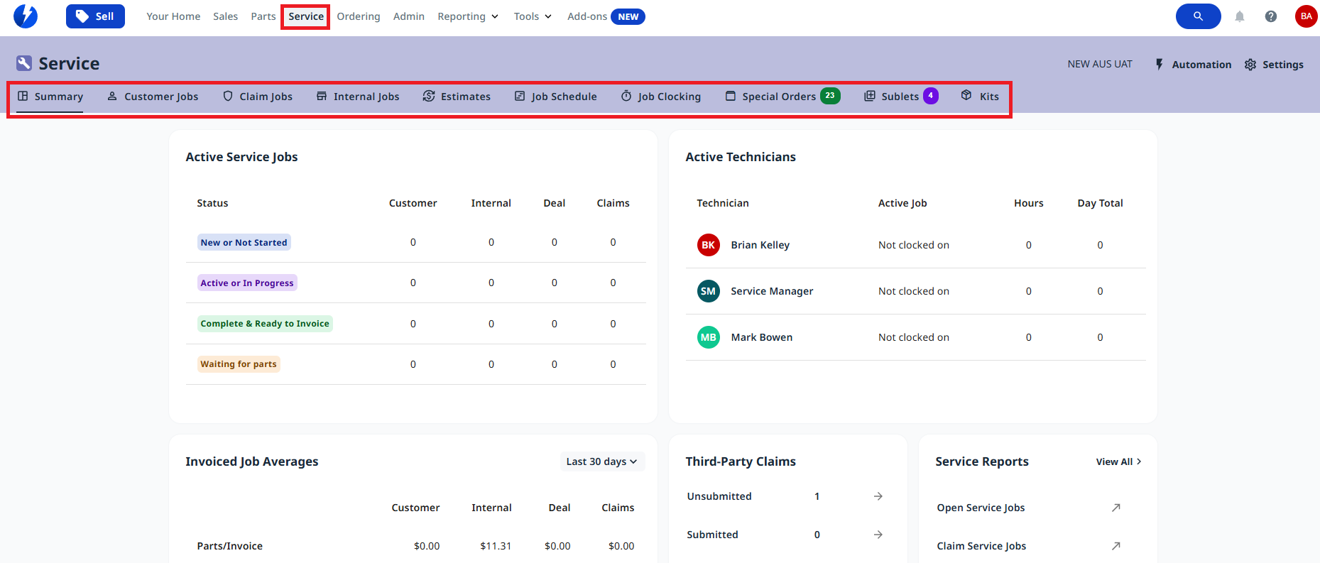 Service Jobs - Open Service Jobs / Claim Service Jobs / Active Service Sublets